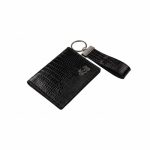 نیم ست چرم طبیعی ترکیبی از چرم بزی فلوتر مشکی و چرم گاوی فلس دار سبز کله غازی که شامل کیف کارت و جاکلیدی میباشد.